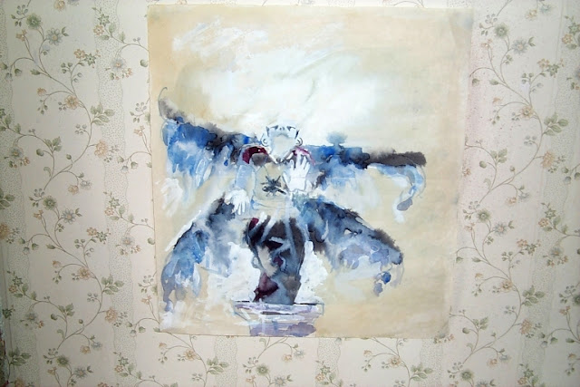 | The first layers on "Swan Song" A painting about my mother. The finished product being with Nick South. |